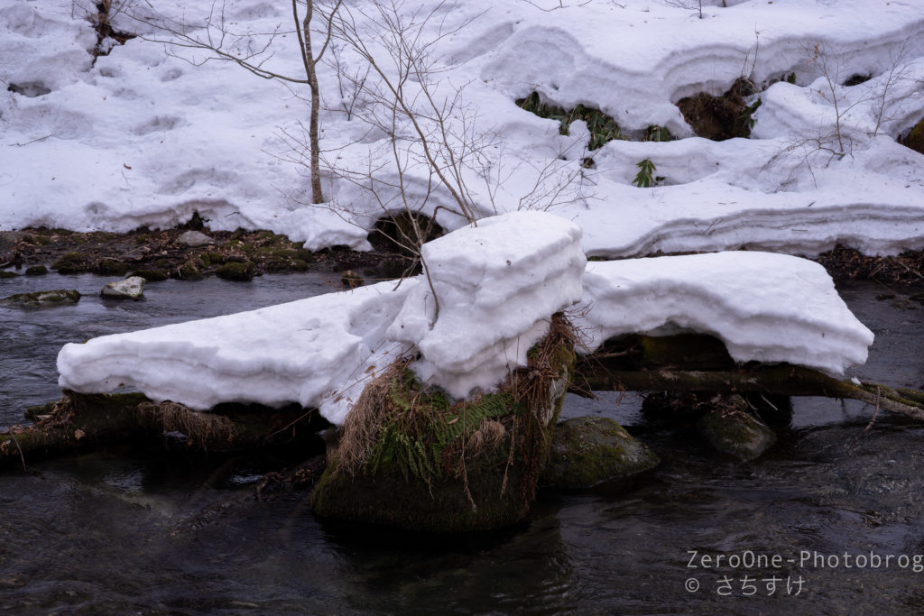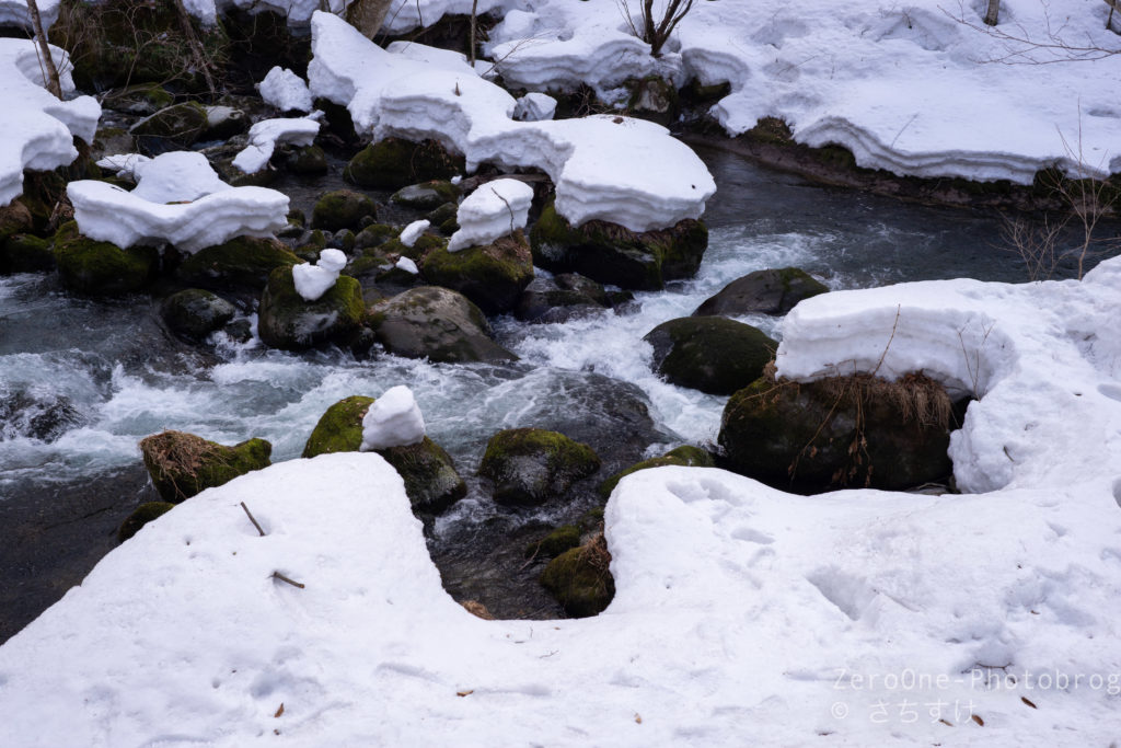 これが春になると溶けてまた雪解け水となって流れていくと考えるととても感慨深いです。