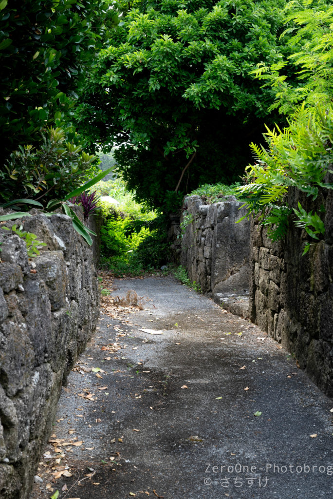 お先草むらですね・・・石垣と民家の入り口がとても沖縄らしいです。