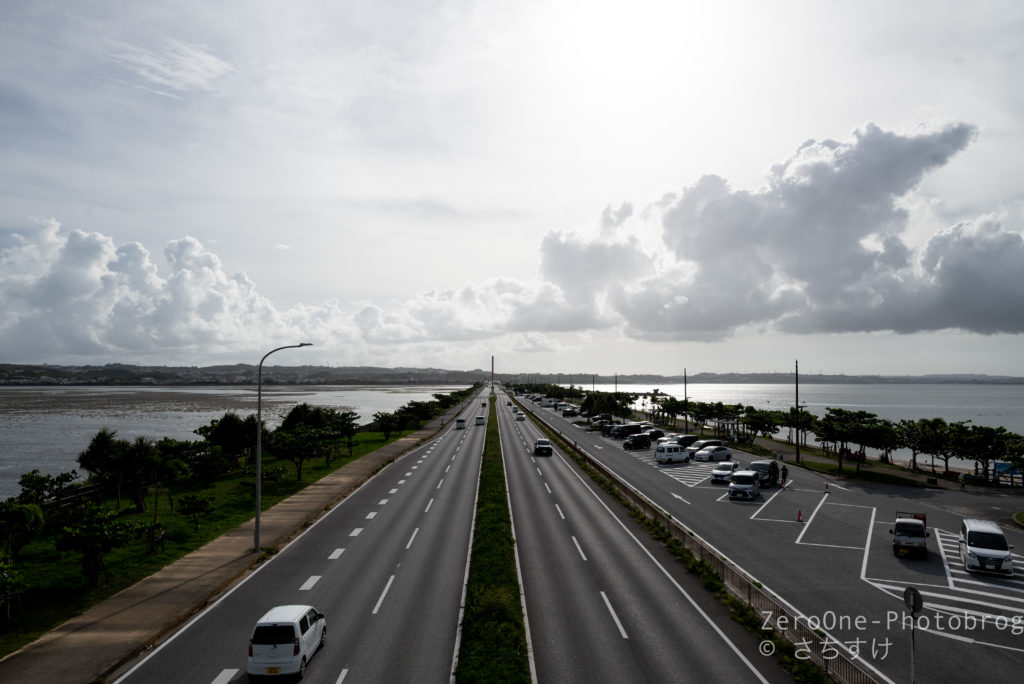 これが海中道路です。干潮だったので、海中感が薄いですね!