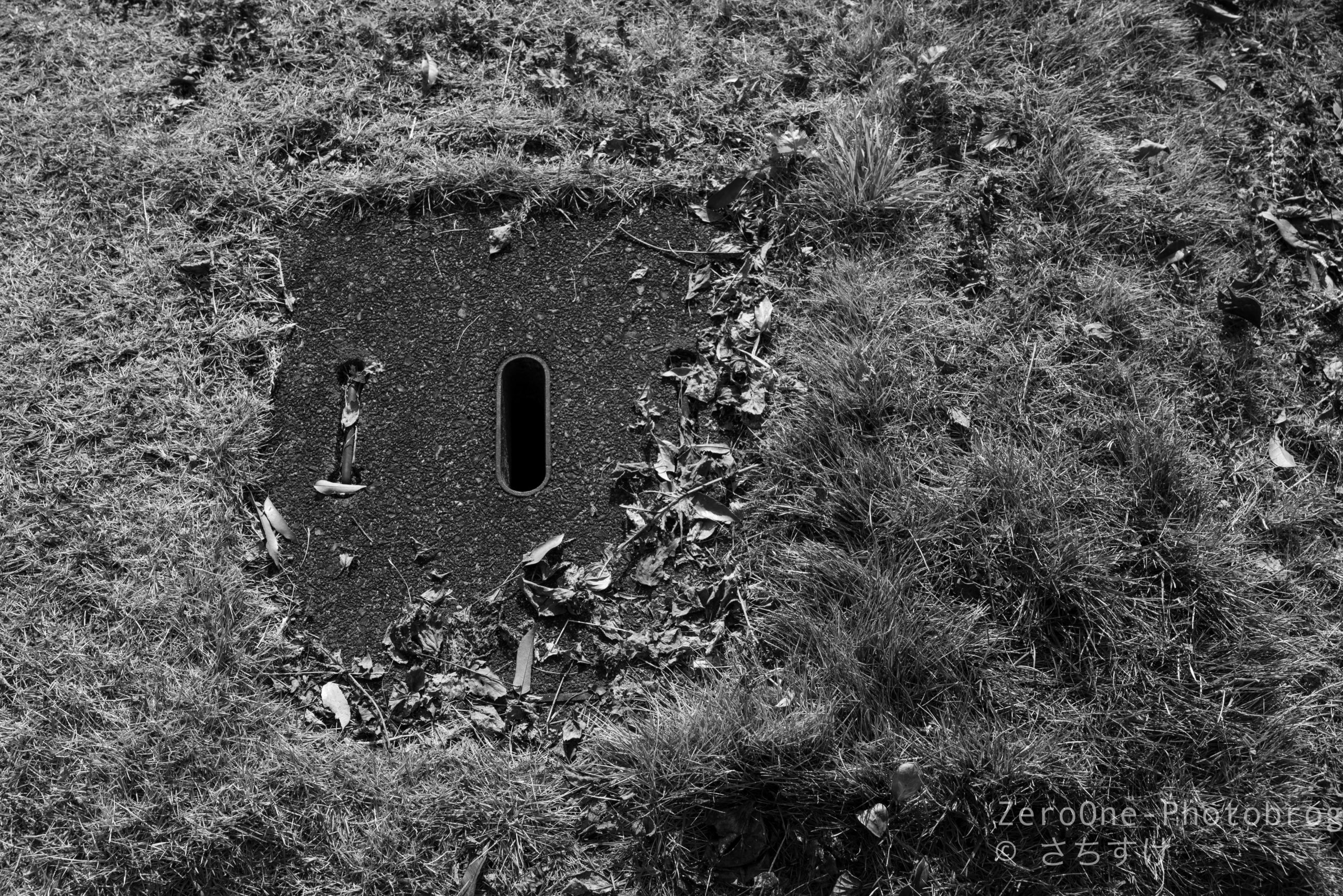落ち葉の乗っかった側溝。この時期ならではです